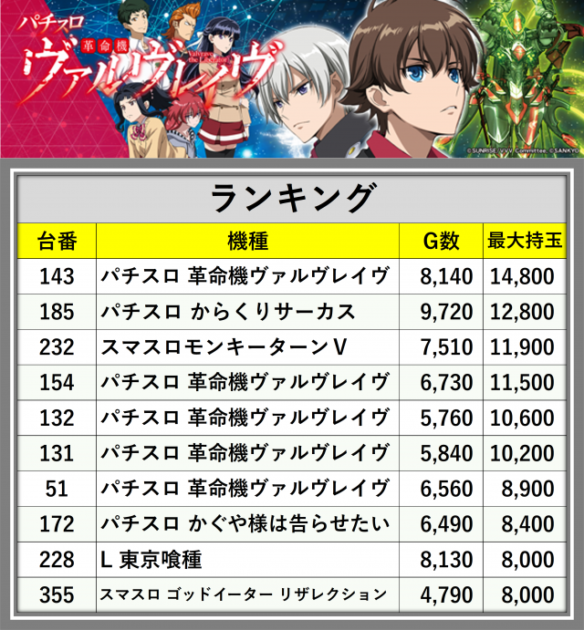 万枚超え4台。すごい。。ほんとに11日に負けてないです。も少し稼働が付いていたらもっと出てたのかも、、