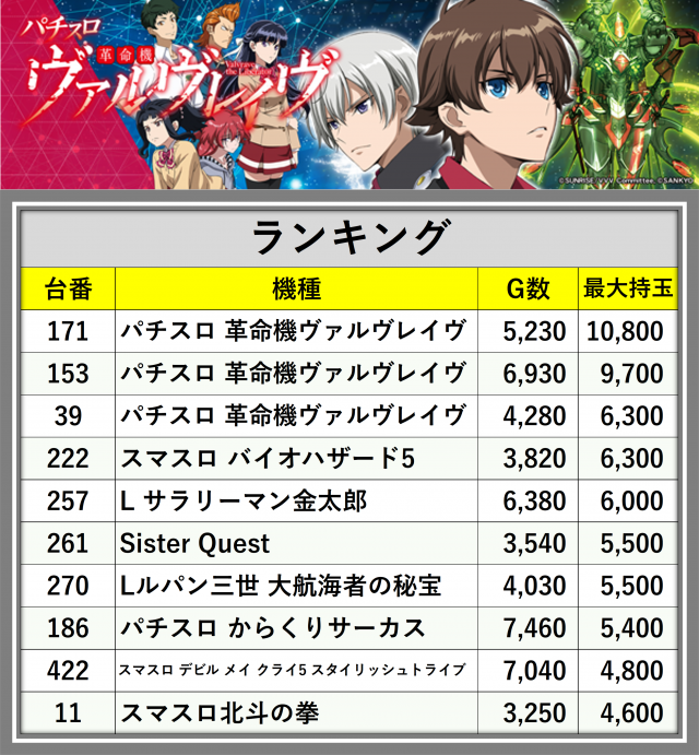 ※最大持玉数順に掲載しています