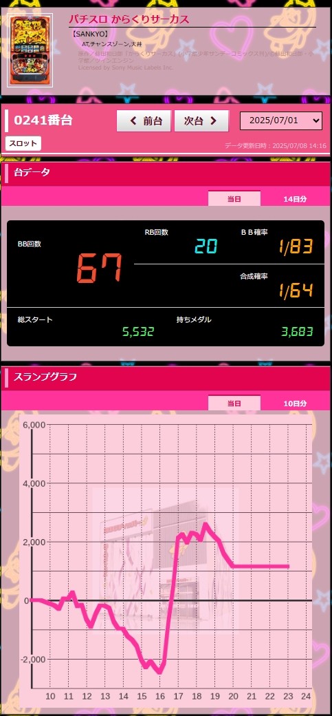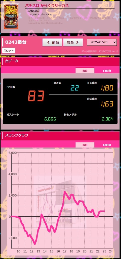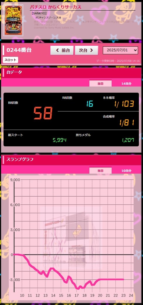 【BIGディッパー花小金井店】パチスロ からくりサーカス_0701グラフ