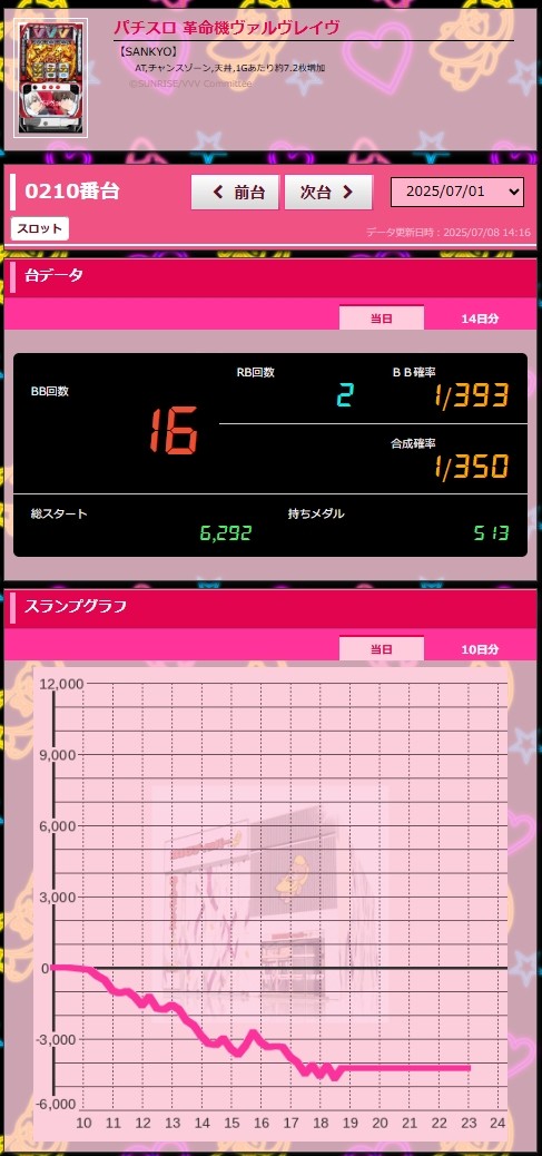 【BIGディッパー花小金井店】パチスロ 革命機ヴァルヴレイヴ_0701グラフ