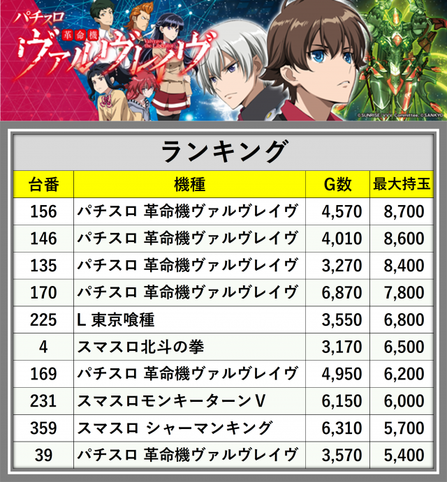 今日も「鳴かぬなら〜」のポスターがあり(私が前回見たのは7月12日でした)、注意しながら見てましたが、、北斗・喰種辺りの稼働が良さげでした。