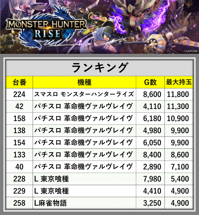 来週はヴヴヴ、モンキー増台と新台入替後の来店!めちゃめちゃ楽しみです。