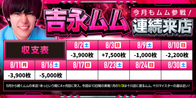 8月の連続来店も6日目。今日も負けちゃった吉永ムムです。