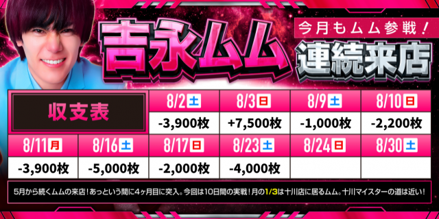 8月の連続来店8日目!またまたまたまた負けちゃった吉永ムムです涙