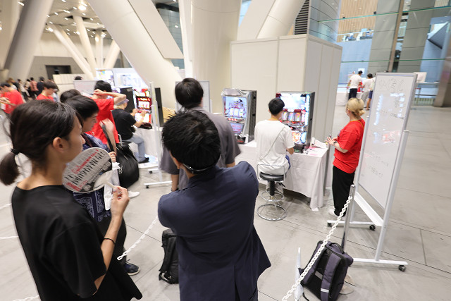 また、遊技機メーカーブースでもパチンコ・パチスロの実機の試打やファン熱望のレアグッズ獲得チャンスの一球・一打入魂、「PS:JAPAN2025」の「みんパチ・スロサミ特別予選」にも長打の列ができました。