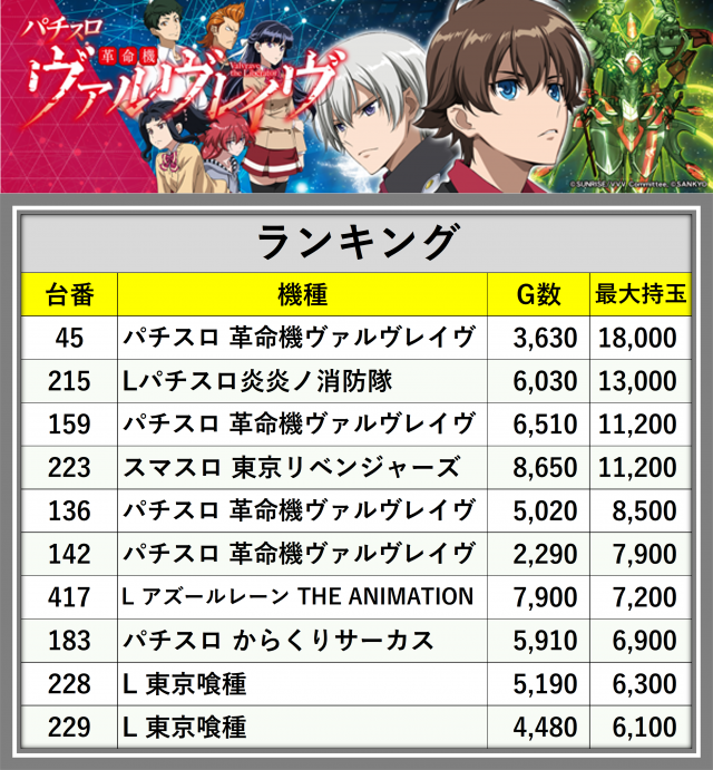 東京リベンジャーズがさすがの人気っぷり、朝からずっと動いてました。前日凹み台が万枚出てるやん。いつか私もリベンジしたい(先日打ってタコ負けしました涙)。