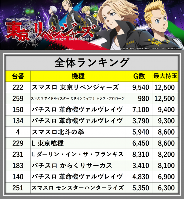 結果論かもですがヴヴヴと同じく東リベ、北斗も前日凹み台がめちゃ出てるぽい。
