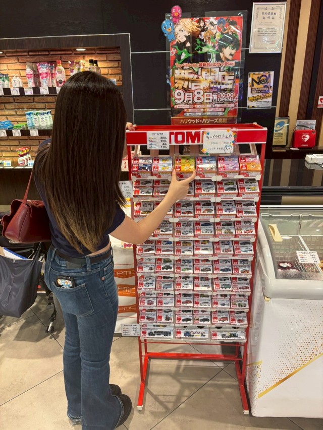 休憩スペースがとても広く、マッサージチェアまで完備。遊技の合間にリラックスできる環境が整っています。景品はお菓子や日用品だけでなく、トミカのラインナップが豊富でこだわりを感じるのも印象的でした。