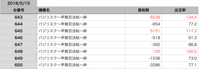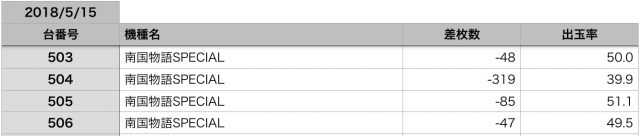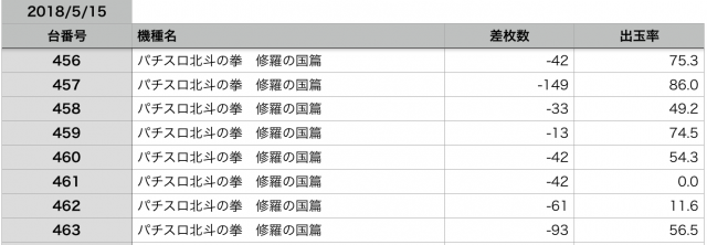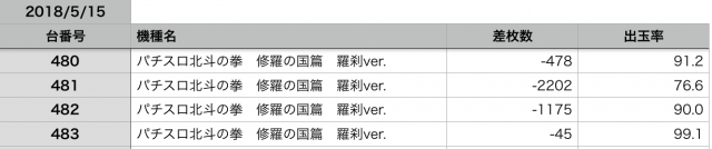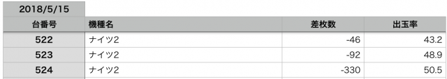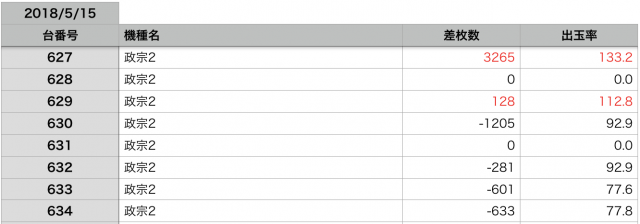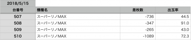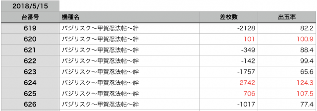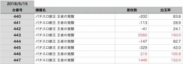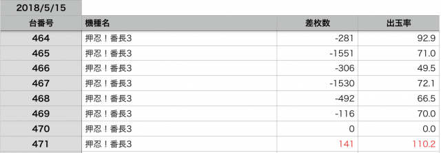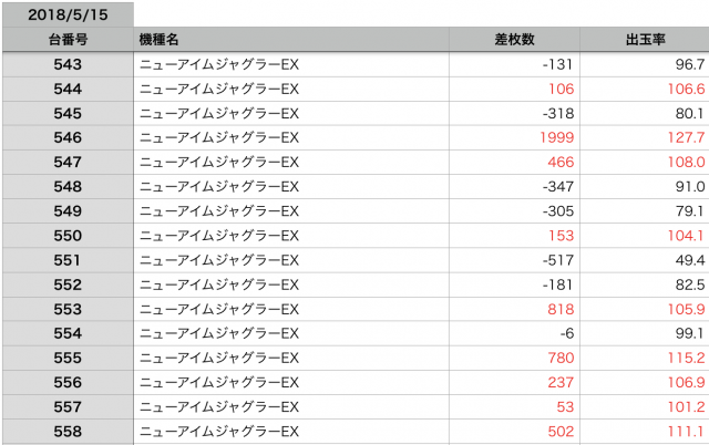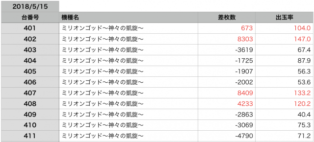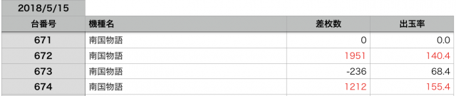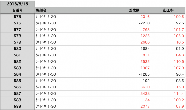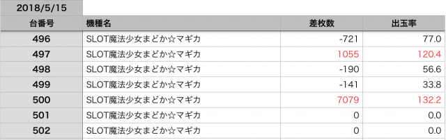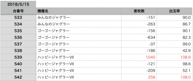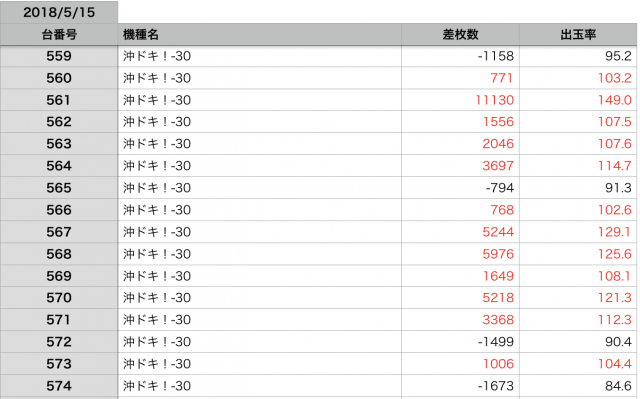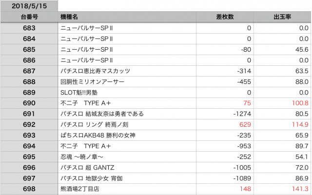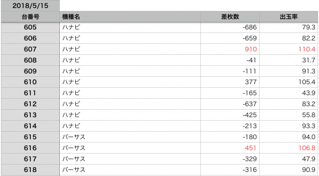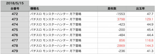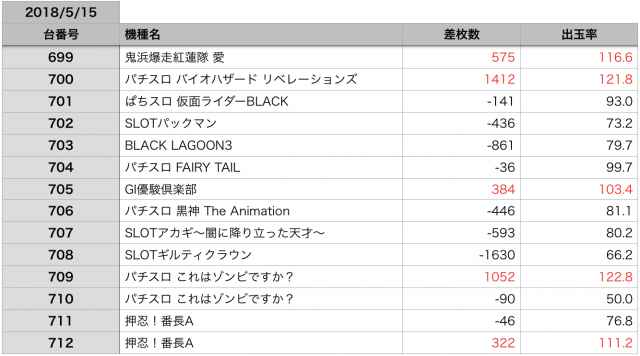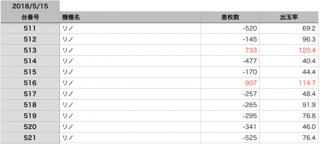 5月15日の全台データ(赤字がユーザー側のプラス、黒字がマイナス)↓
