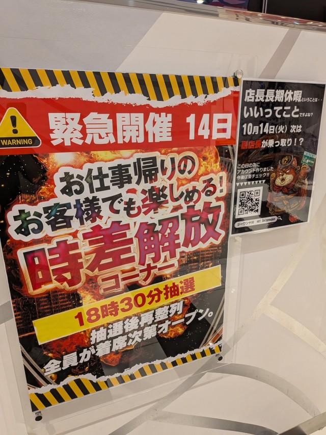 お店の告知ですが、10月14日は急遽時差解放があるみたいですよ。店内でかなりの数ポップが立ってましたので、ぜひ行ってみてはいかがでしょうか!自分がサラリーマン時代にこうゆうのあれば絶対行ってたなぁ。。
