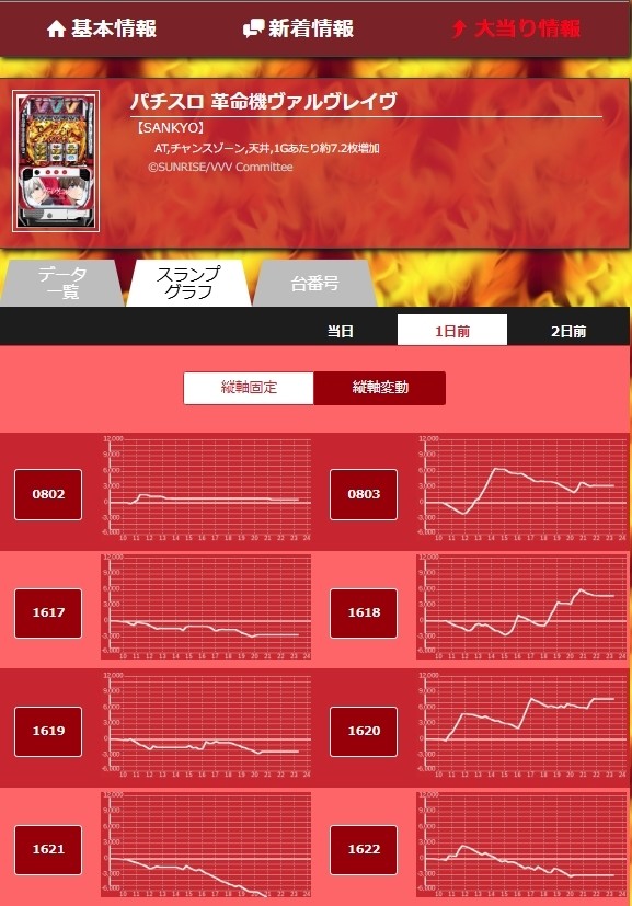 【BIGディッパー新橋1号店】パチスロ 革命機ヴァルヴレイヴ_1001グラフ