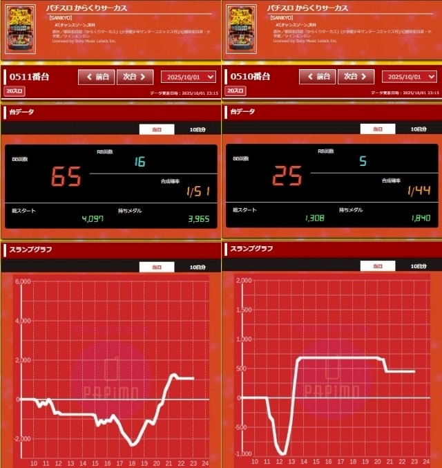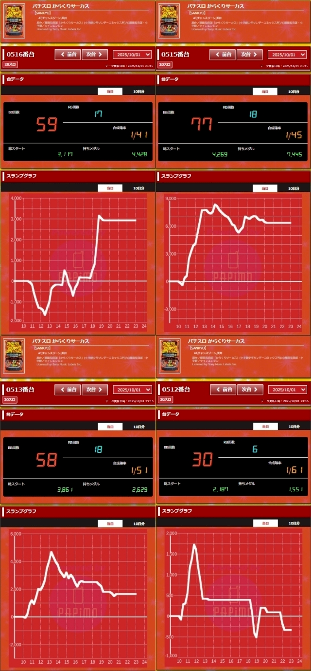 【BIGディッパー大井町店】パチスロ からくりサーカス_1001グラフ