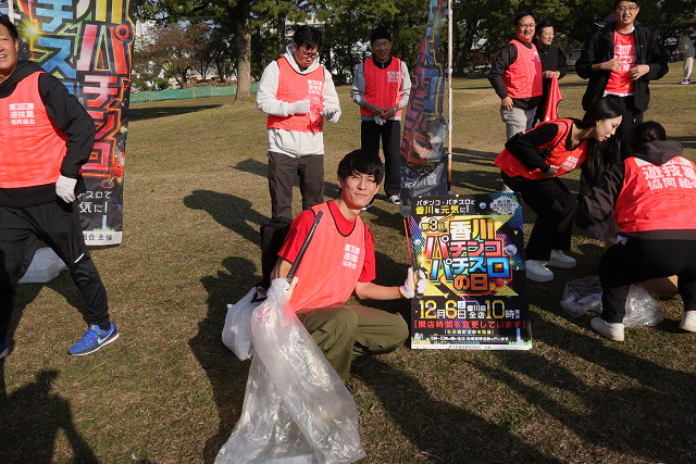 今回、その清掃活動に全日本学生遊技連盟(略称:学遊連)の山東聖也くんも参加させていただきました。5月に開催された清掃活動に参加した有村君に続き、社会貢献という貴重な体験を通じてぱちんこ業界で働く人たちとの一体感を感じられました。