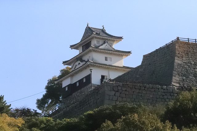 芝生広場から望む三層三階の丸亀城天守。実はキャッスルエクスペリエンスで貸し切り&宿泊も可能!