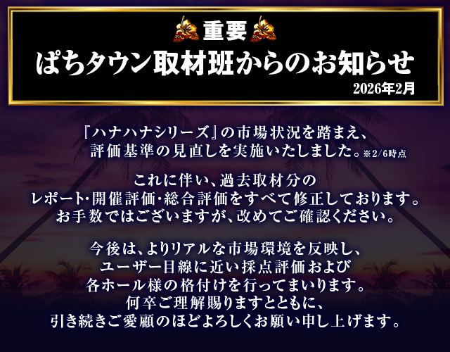 DMMぱちタウンが取材を実践して判明した"事実"と"ユーザー評価"により、真のハナハナ優良店を決める企画です。