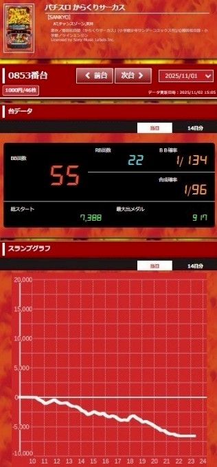 【BIGディッパー戸越銀座店】パチスロ からくりサーカス_1101グラフ