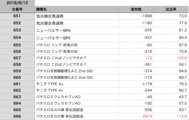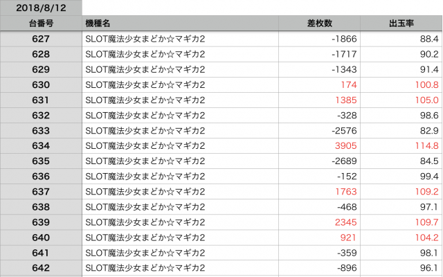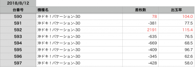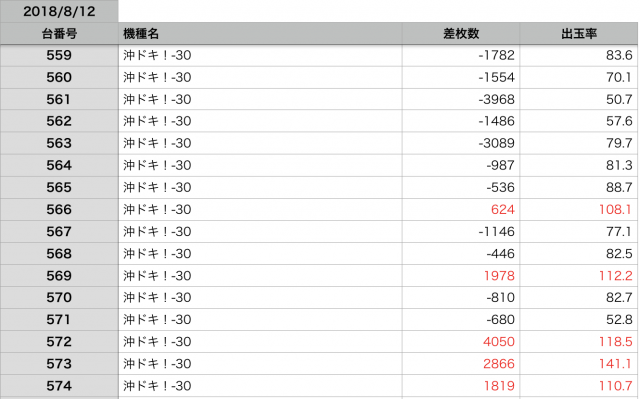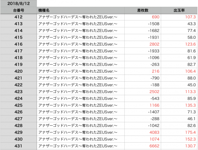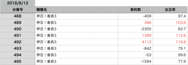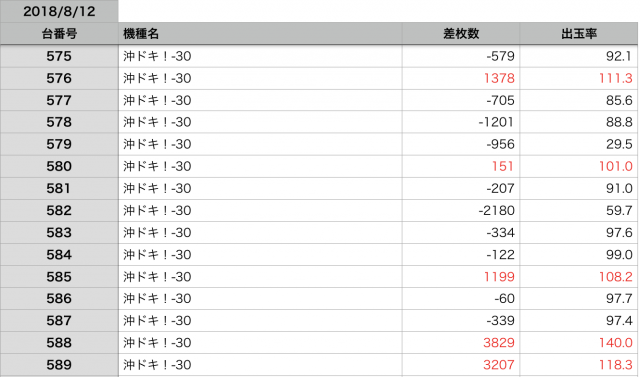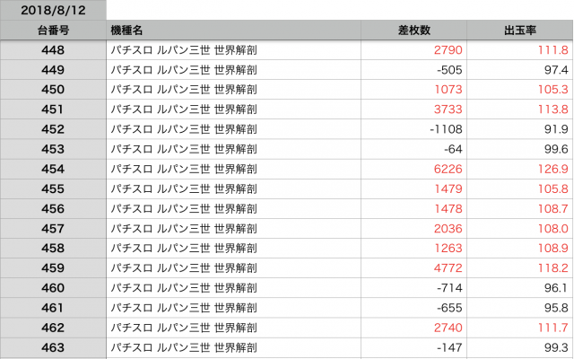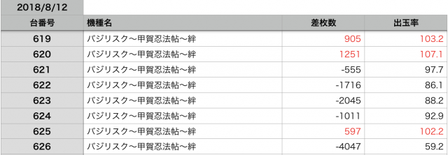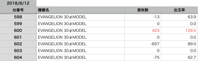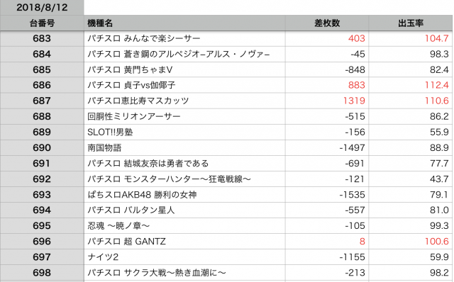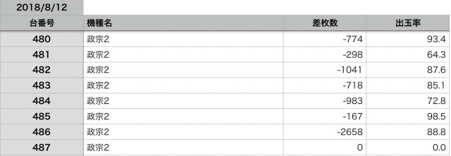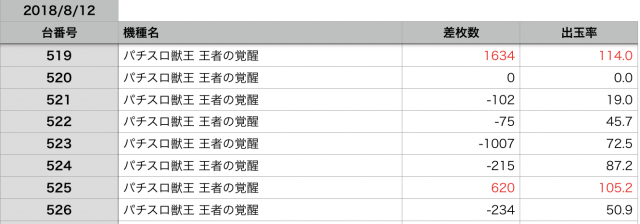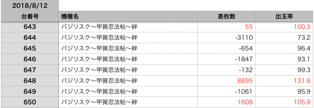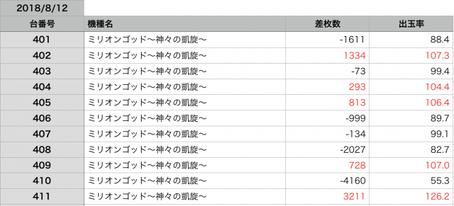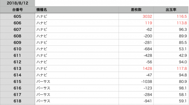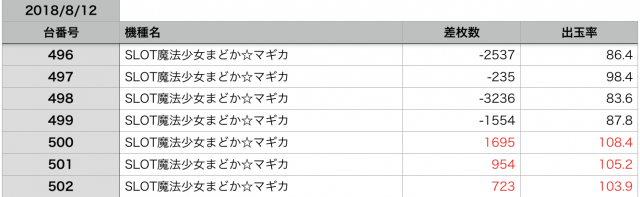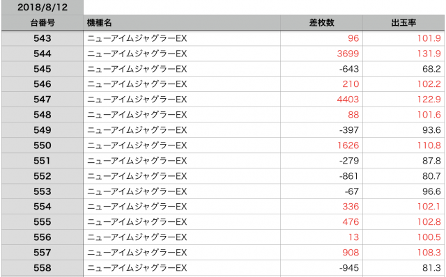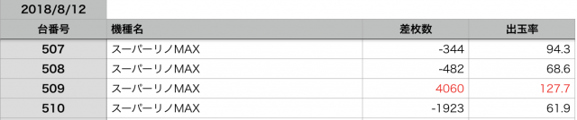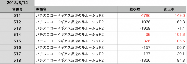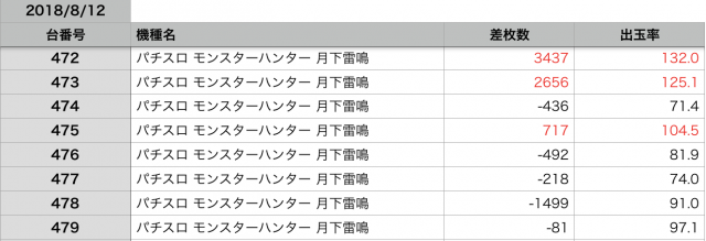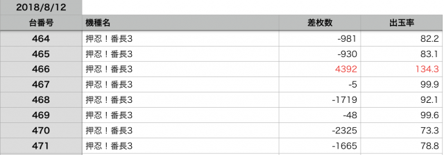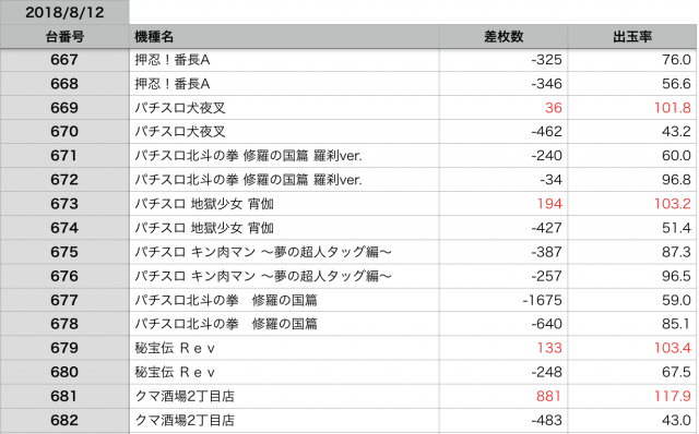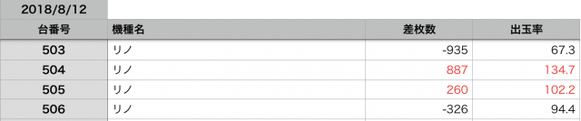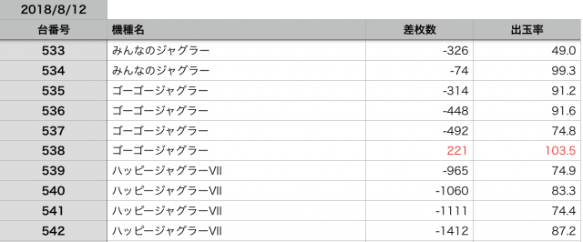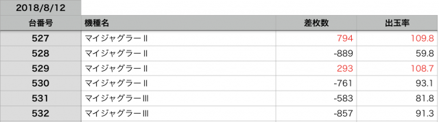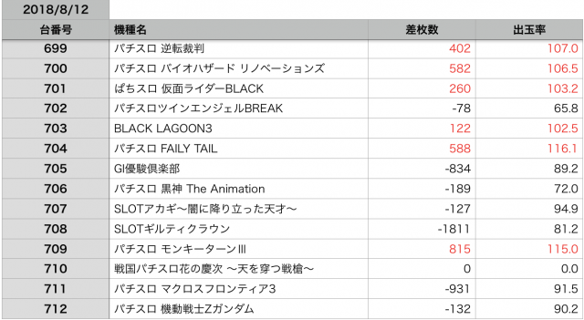8月12日の全台データ(赤字がユーザー側のプラス、黒字がマイナス)↓