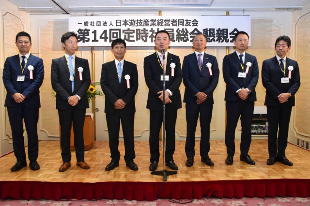 懇親会では、警察庁保安課の山田好孝課長の祝辞を齋藤敬之課長補佐が代読し、「パチンコへの依存問題は国民の高い関心を集めており、今後も業界一丸となって依存防止対策に重点を置きつつ、健全化に取り組んでほしい」と要望した。
