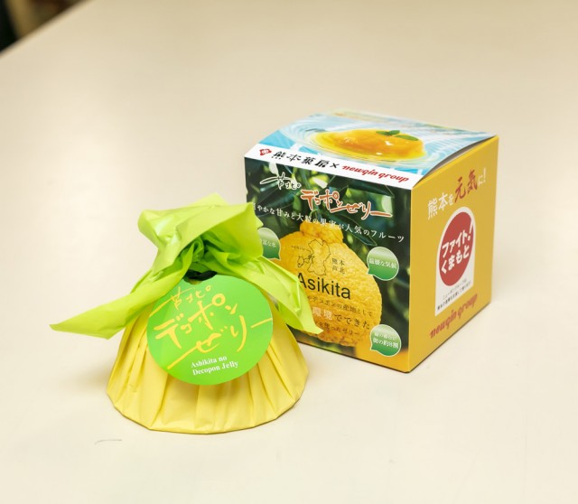 「熊本菓房」がゼリー菓子「芦北のデコポンゼリー」を製造し、熊本県合志市にある障がい者施設「栞」がオリジナルパッケージにて梱包。