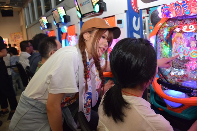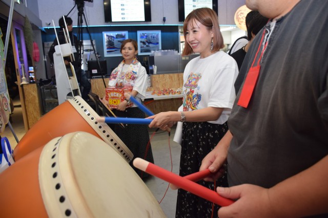デモ機8台が設置された試打コーナーや、「太鼓の達人」のアーケードゲームで、ライターと対戦するコーナーも大盛況となった。