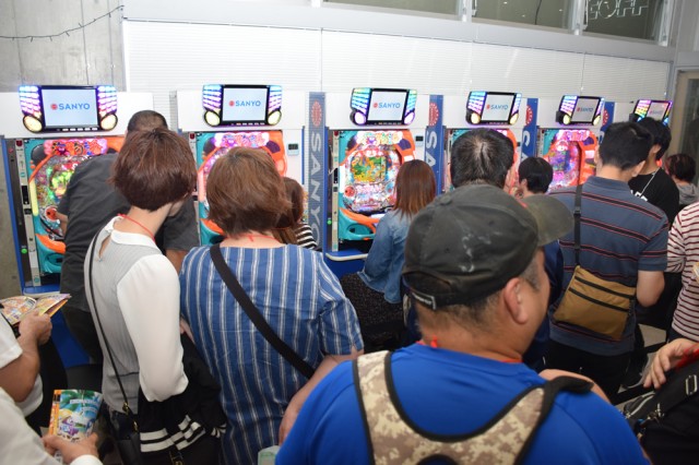 親子で来場した40代男性は「娘は普段パチンコを打たないですが、試打が楽しかったようで、ホールでも打ってみるそうです」と笑顔。