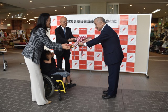 障害者福祉団体「新発田市手をつなぐ育成会」と「支援センターあんしん」に移送用車両を寄贈した。