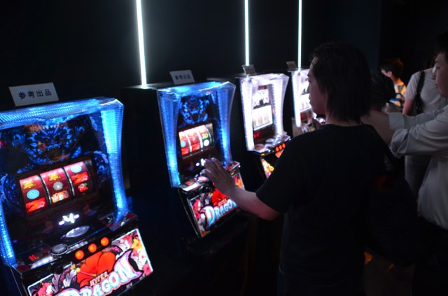参考出品として展示した3機種「ハイドラ-30」「ミルキィホームズ 1/2の奇跡」「ウェイクアップガールズ!」のデモ機を試打しながら、3機種のスペックコンセプト「AAA」(トリプルエー)について触れ、「『AAA』のAはAタイプのA。AT機だが、目指したのは1000枚程度なら短時間で獲得できるノーマル機に近い打感。さらに、1回のボーナスの平均期待枚数をもとに、『AAA 400』『同430』『同450』に分け、射幸性の差を明確にした」と語った。