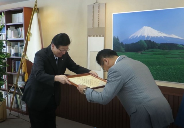 静岡・山梨・長野・愛知県に38店舗を展開するABCは9月19日、静岡市の静岡県庁で川勝平太知事から感謝状を受領。