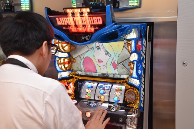 前者は、擬似ボーナスタイプのAT機。擬似ボーナス(純増約9枚/G)は、「MAX BONUS」(1セット34G、獲得枚数約306枚)と「LUPIN BONUS」(15枚役ナビ5回、獲得枚数約60枚)の2種類があり、出現率はおおむね1対1。