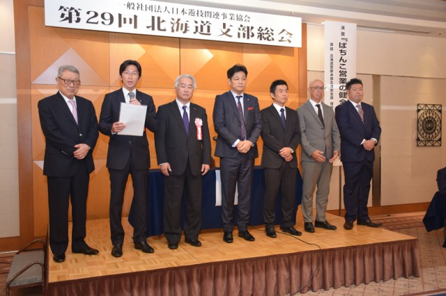 美山支部長は「5方面(札幌・旭川・釧路・北見・函館)に釧路方面十勝帯広遊技業組合を加えた北海道のホール団体が、ひとつになろうと本格的に動き始めている。オール北海道として、業界の課題に取り組んでいける環境づくりを私たちも進めており、皆さまの協力をお願いしたい」と呼びかけた。