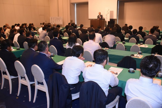 冒頭、大阪府警保安課の多久竜一保安課長が講話。