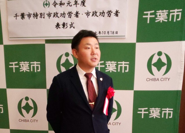アミューズは地域活性化の一環として、同市教育委員会にZOZOマリンスタジアムで行われる日本プロ野球・千葉ロッテマリーンズの年間シート100万円分を寄付したことが評価されたもので、表彰式に参加した同社の岩谷和馬専務は「千葉市の子どもたちの将来の成長に少しでも役立たせていただきたいと思い、寄付しました」と語った。