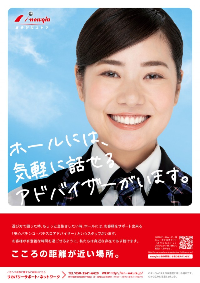第1弾、第2弾「パチンコモテしぐさ」シリーズでは、ホール内でのマナー啓蒙がテーマだったが、第3弾の今回は、「依存問題」の啓蒙がテーマ。