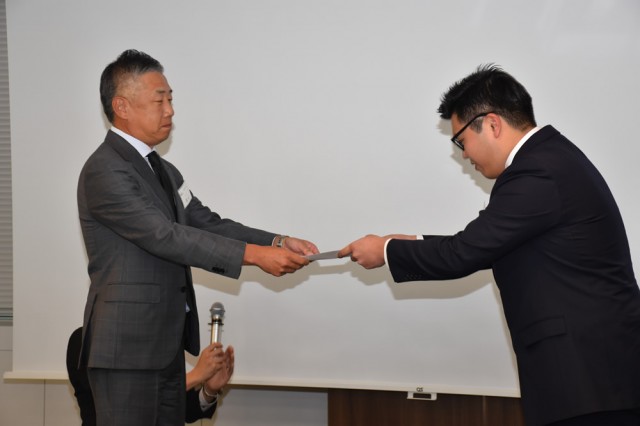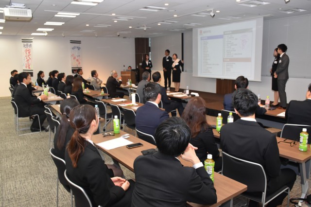 明治大学や明星大学、神奈川大学、関西大学、同志社大学の学生など、高い評価を受けた22人(5チーム)が、韓裕社長や同社幹部らの前で、最終プレゼンを行った。