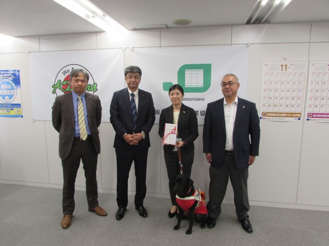 回胴遊商東北支部(田苗幸治支部長)は11月8日、仙台市の東北支部事務局で日本盲導犬協会に寄付金を贈呈。