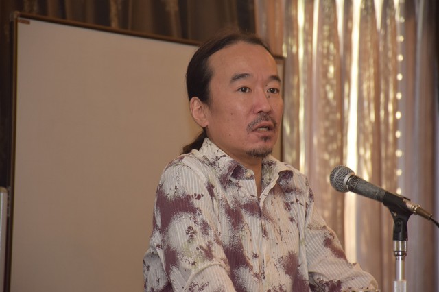 フリーライターのPOKKA吉田氏と精神可視化の技術開発などを研究する未踏医科学研究財団の萩原幸二主任研究員が講演した。