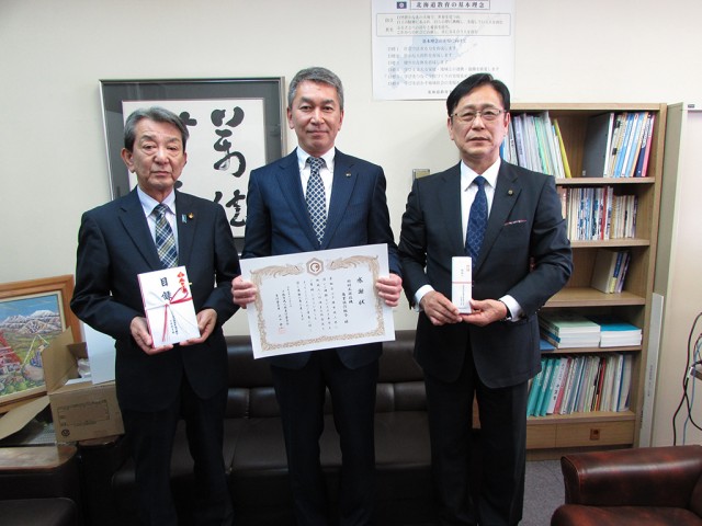 回胴遊商(大饗裕記理事長)の北海道支部は12月6日、北海道夕張市の夕張市役所で「夕張市成人祭 実行委員会」に印鑑付きボールペン60本を贈呈。