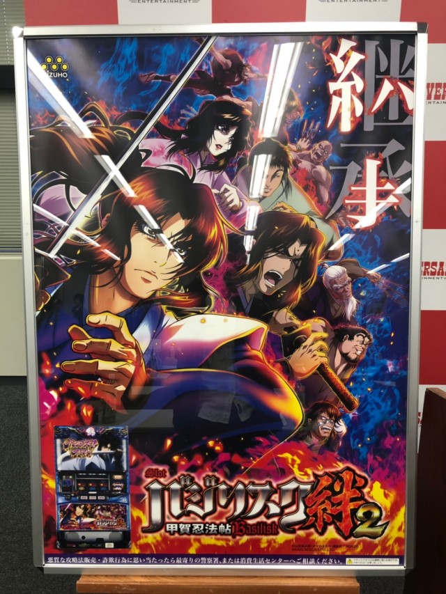 ユニバーサルエンターテインメントは12月19日、東京都江東区の本社で『SLOTバジリスク~甲賀忍法帖~絆2』(メーシー製)の記者発表会を開催。