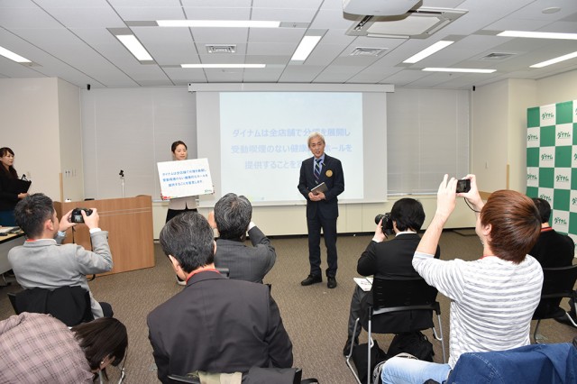 ダイナムは1月15日、東京都千代田区の丸の内トラストタワーN館で「2020完全分煙化PROJECT」の発表会を開催。