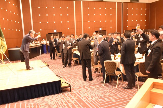 総会終了後の懇親会には、都遊協の阿部恭久理事長やユニバーサルエンターテインメントの長谷川崇彦部長らが臨席。