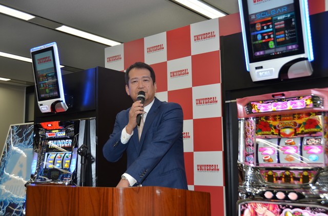 ユニバーサルエンターテインメントは1月27日、東京都江東区の本社で『沖ドキ!2-30』、および『サンダーVライトニング』(いずれもアクロス製)の記者発表会を開催。