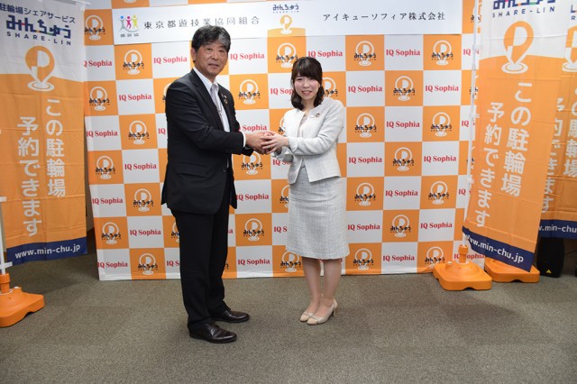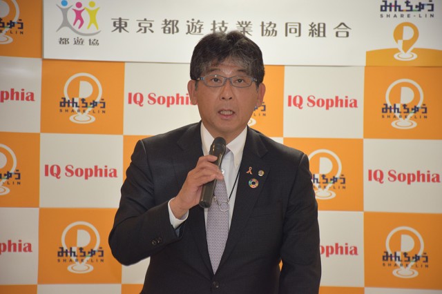 都遊協(阿部恭久理事長)は2月12日、東京都新宿区の「遊技会館」で駐輪場のシェアサービス「みんちゅうSHARE-LIN」を運営するアイキューソフィアとの共同記者会見を開催。