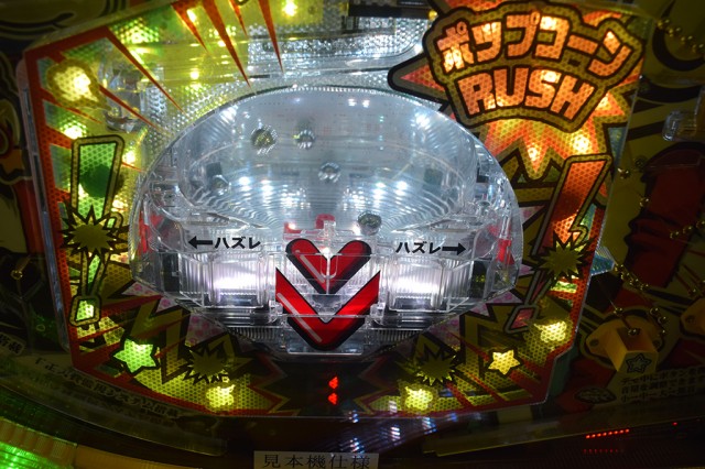 拾われた玉は、浅いすり鉢状の役物に導かれ、中央の回転体によって弾かれ、調理中のポップコーンさながらに役物内を飛び跳ねる。