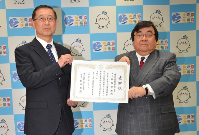 神奈川県遊協(伊坂重憲理事長)は3月23日、横浜市の「神奈川県遊技場協同組合会館」で感謝状贈呈式を開催。
