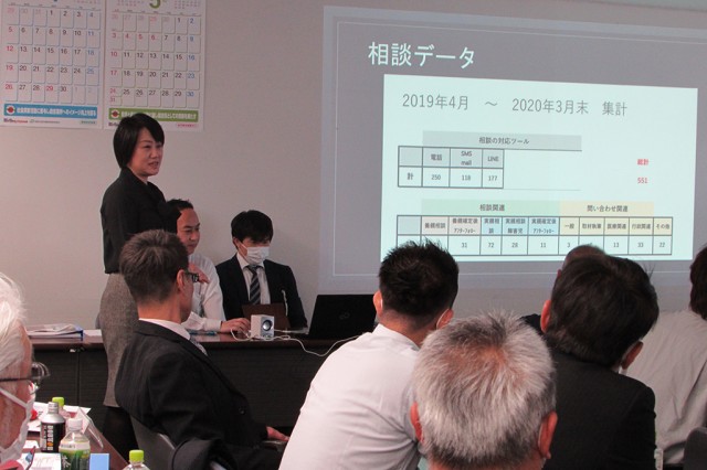 感謝状を授与したあと、小川代表は理事会の会場で、プロジェクターを使用しながら、2019年度の活動を報告した。