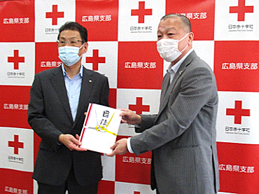 中国遊商(松原陽輔理事長)は5月21日、広島市の日本赤十字社広島県支部を訪問。