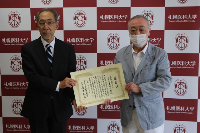 同日、東原俊郎社長が大学を訪問し、塚本泰司理事長に目録を手渡した。