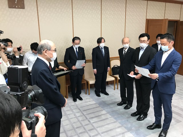 石川県遊協(浅野哲洋理事長)は6月3日、金沢市の石川県庁で、医療用防護服5000枚とタムラテコ社製のオゾン紫外線除菌機50台(総額1500万円相当)を寄贈。浅野理事長が、同県の谷本正憲知事へ目録を手渡した。