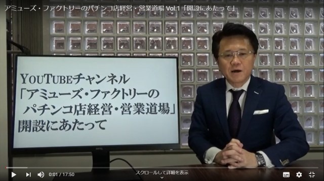 ホールのコンサルティング事業を展開するアミューズ・ファクトリーは5月8日、YouTube動画「アミューズメント・ファクトリーのパチンコ店経営・営業道場」の配信を開始。
