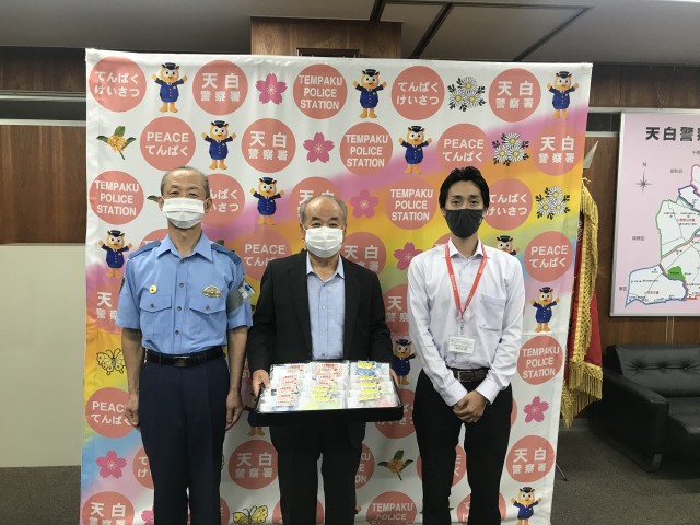 愛知県と岐阜県に11店舗を展開する真城ホールディングスは7月8日、名古屋市の天白警察署で天白区防犯連合協議会に、愛知県の伝統工芸「有松絞」が施された布マスク60枚を贈呈。